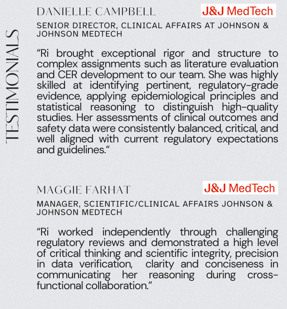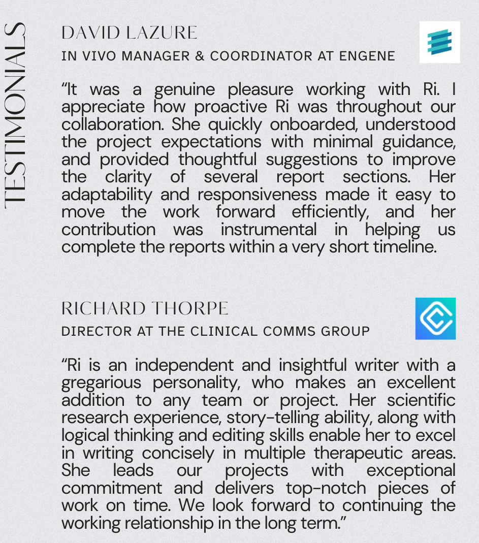 Based in Montreal and working internationally, Ri partners with scientists, lab leaders, and technical professionals to translate complex work into clear, defensible communication and efficient, rigor-first workflows. Backed by an engineering PhD and over four years of experience, she helps teams use AI critically without compromising scientific standards.